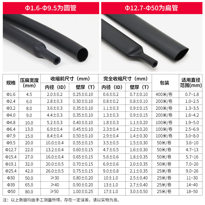 20mm 黑色热缩管绝缘套管数据线电线保护套软护套电工套管0.6 包邮