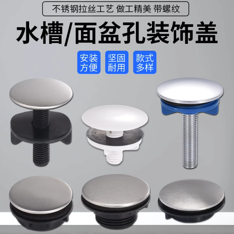 洗菜盆堵口盖洗手盆不锈钢盖帽水龙头装 饰盖子 饰盖皂液器洗脸盆装