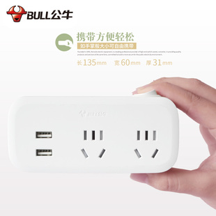 公牛插座多功能插头转换器多插位拖插排插线板一转三面板多孔扩展