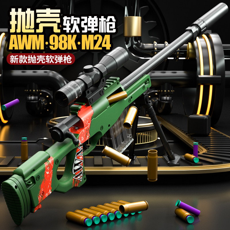 awm可抛壳儿童玩具枪男孩仿真98k狙击m24男童抢模型消音器射击