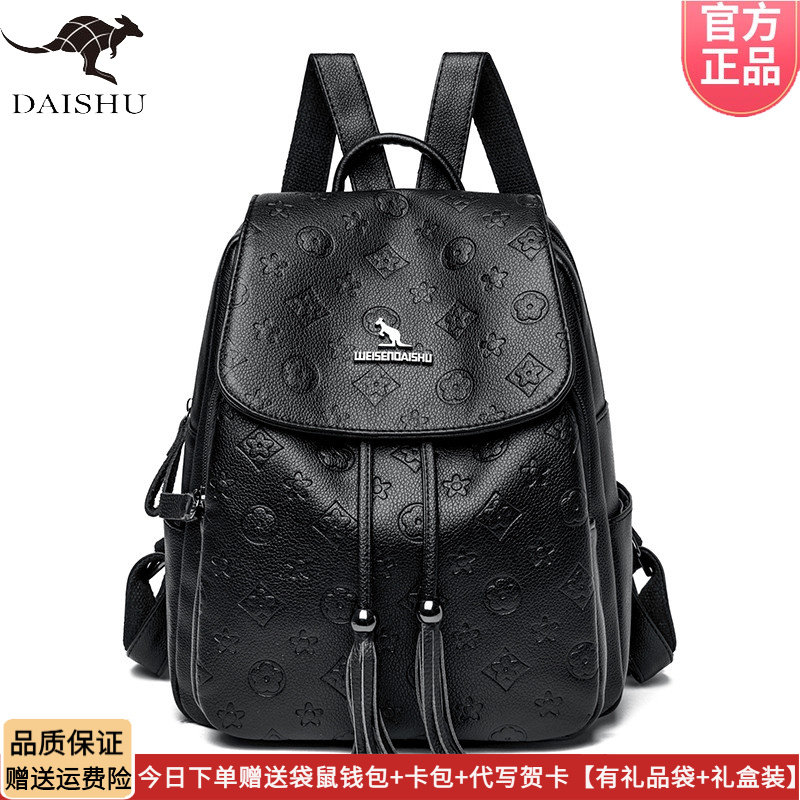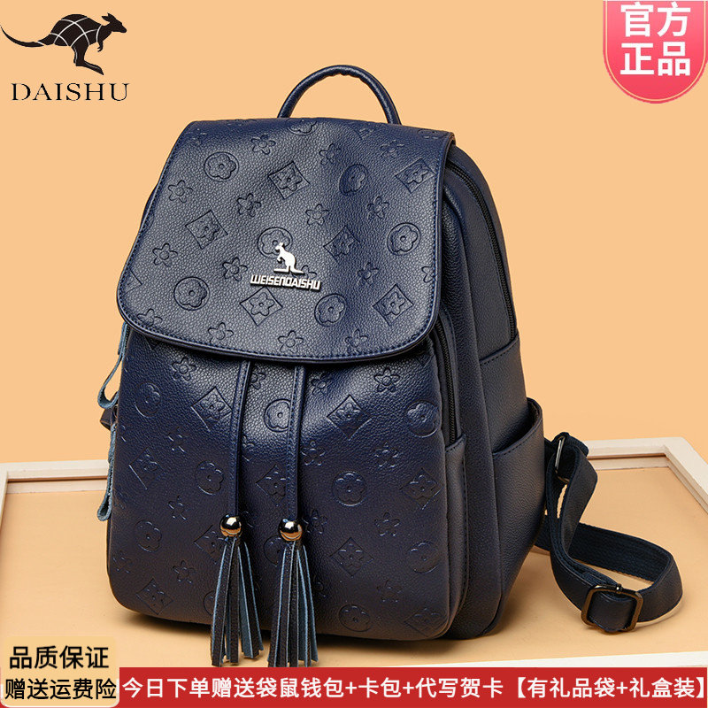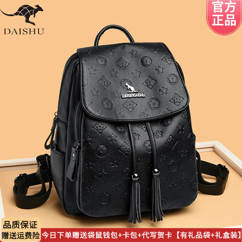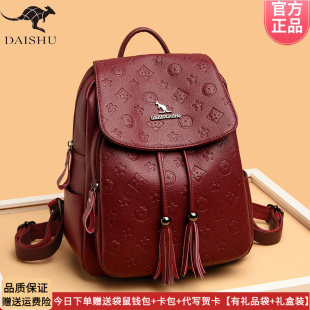正品 书包大容量通勤软软皮轻便旅行背包 袋鼠皮包双肩包女2026新款
