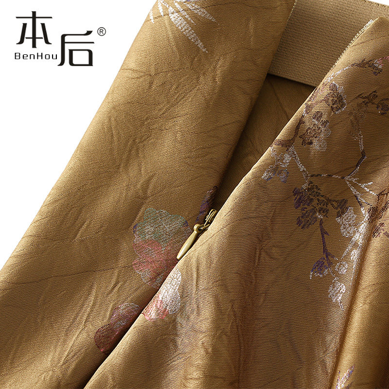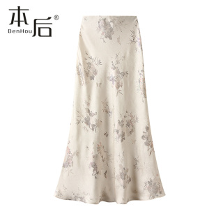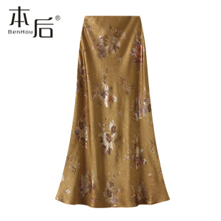 2025夏新款 9902 烫金印花褶皱半身裙女长款 薄款 鱼尾包臀裙子