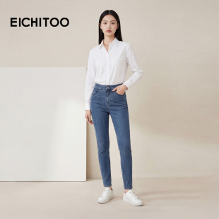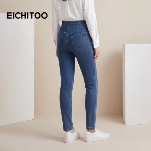 小脚裤 牛仔裤 女 基础简约弹力修身 爱居兔春季
