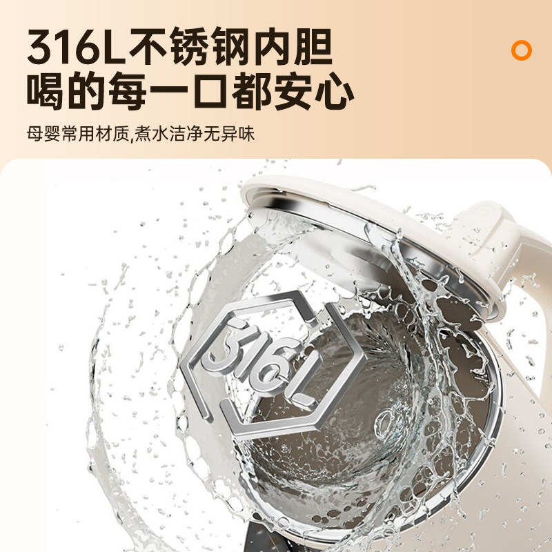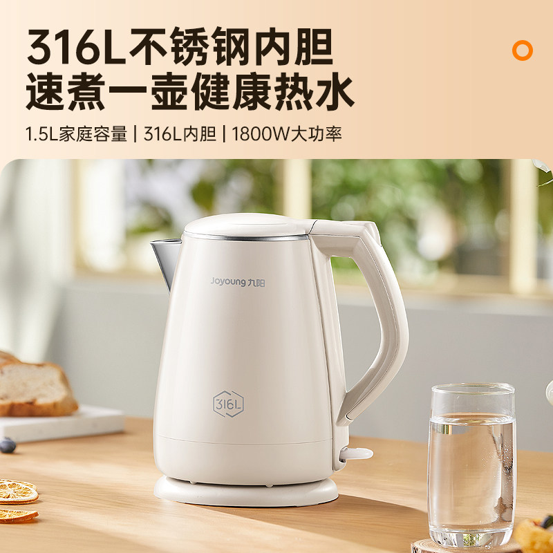 九阳电热水壶开水煲316L不锈钢家用自动断电开水壶烧水壶大容量