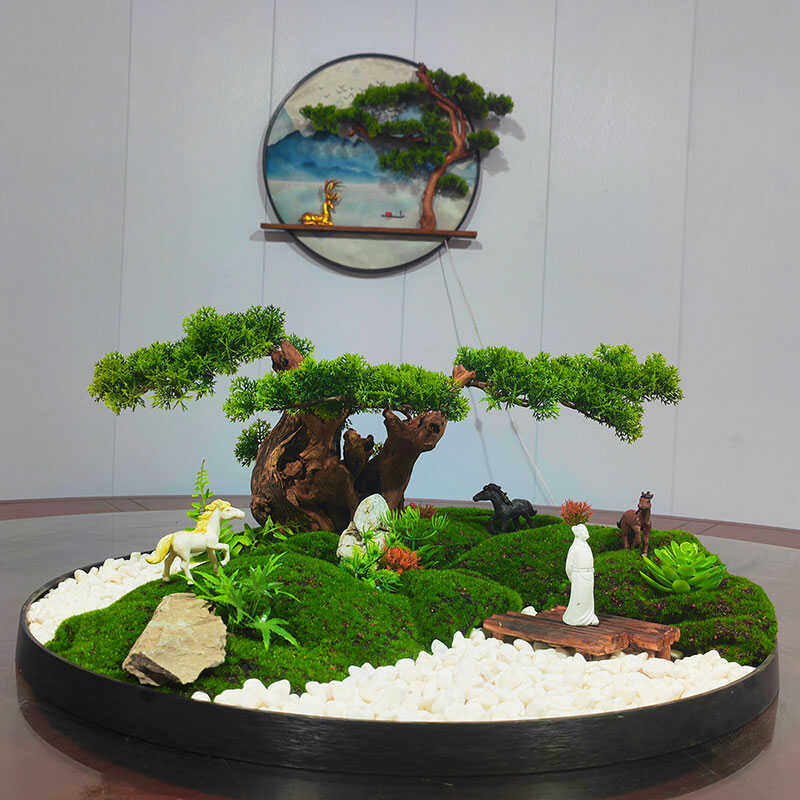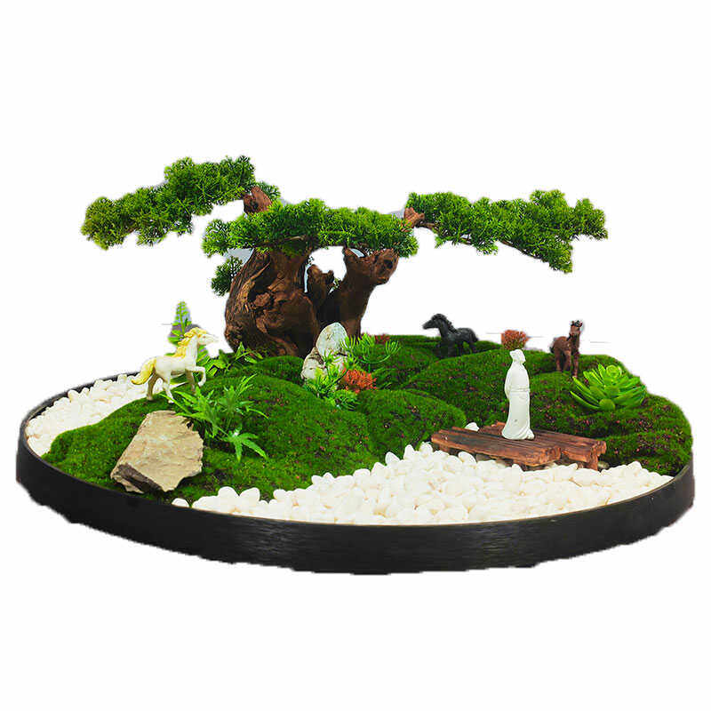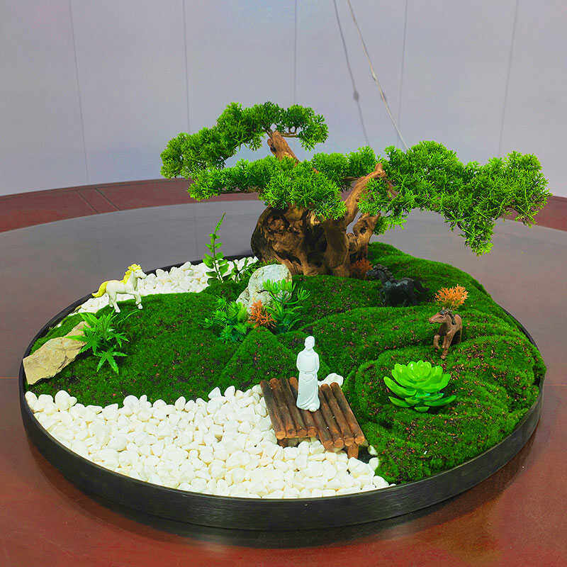 新中式 饰沙盘 餐桌桌花酒店圆桌转盘枯山水摆件餐厅桌面中间造景装