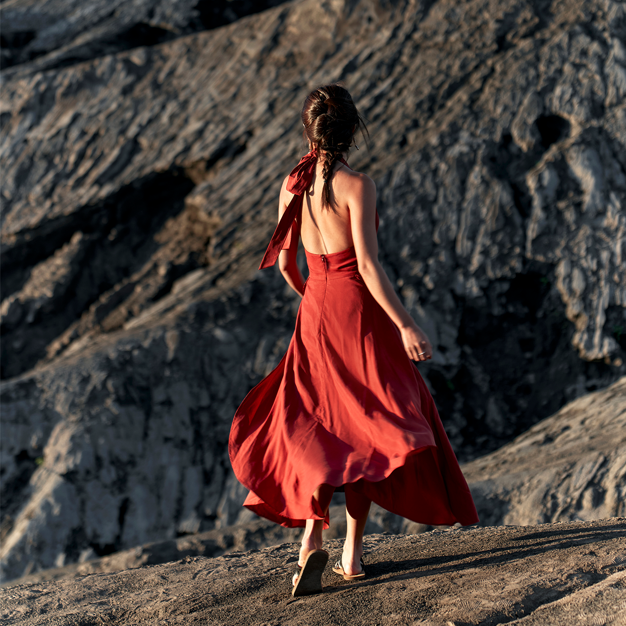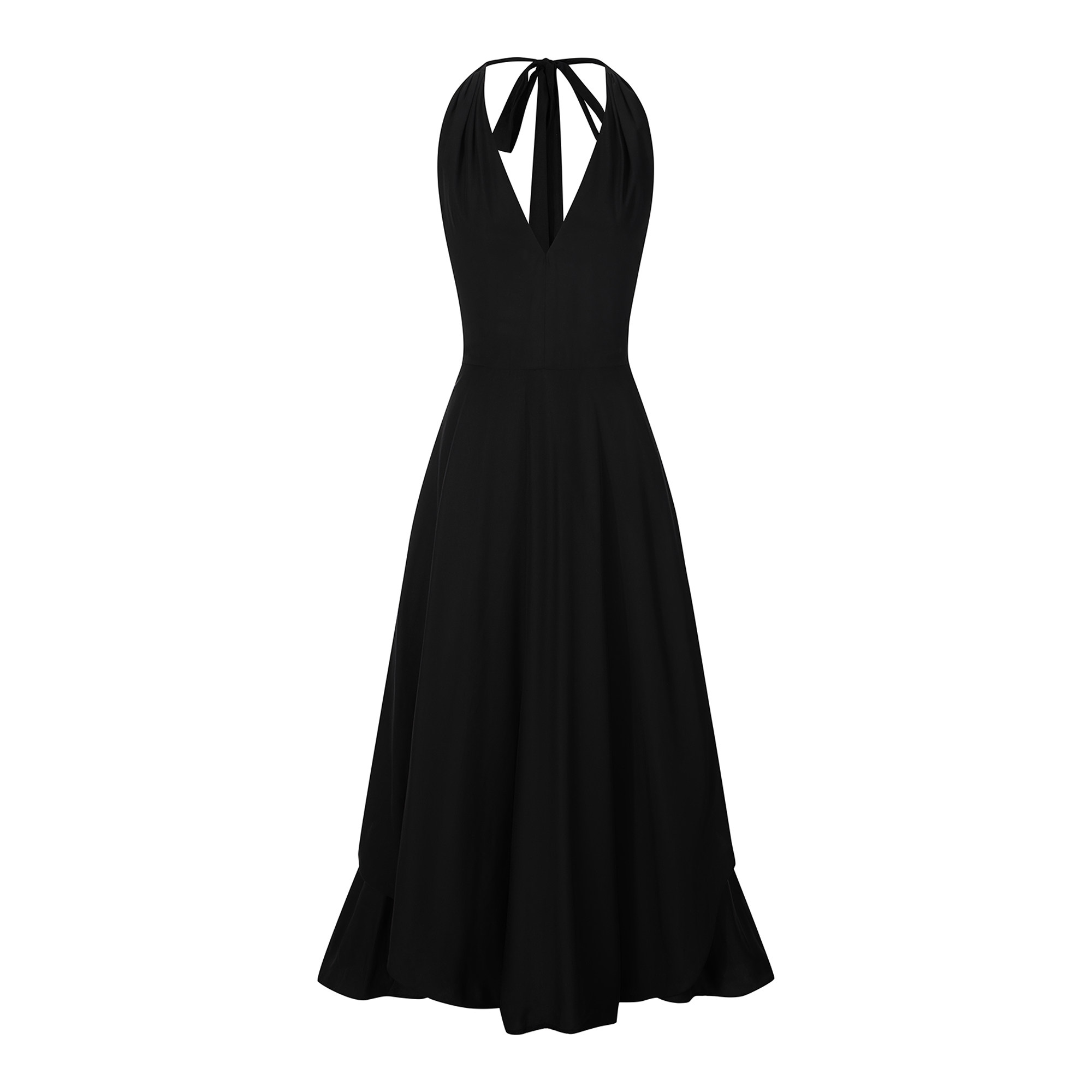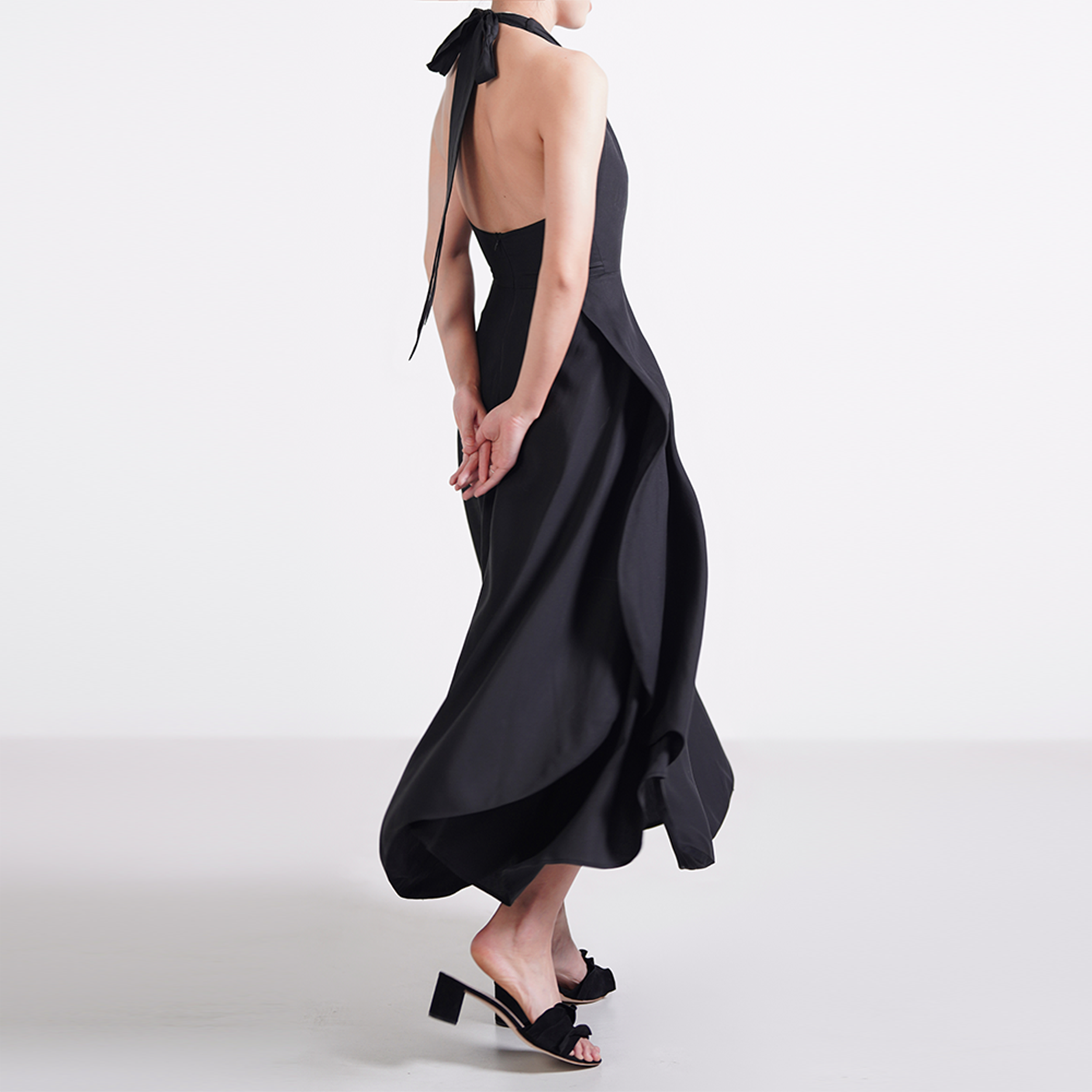 gusty欧美性感挂脖深V连衣裙气质宴会高级感小礼服露背女神皮裙秋