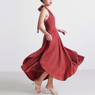 加色 Sorbet微醺长款 裸粉雾紫色挂脖不规则连衣裙 迟伞伞25