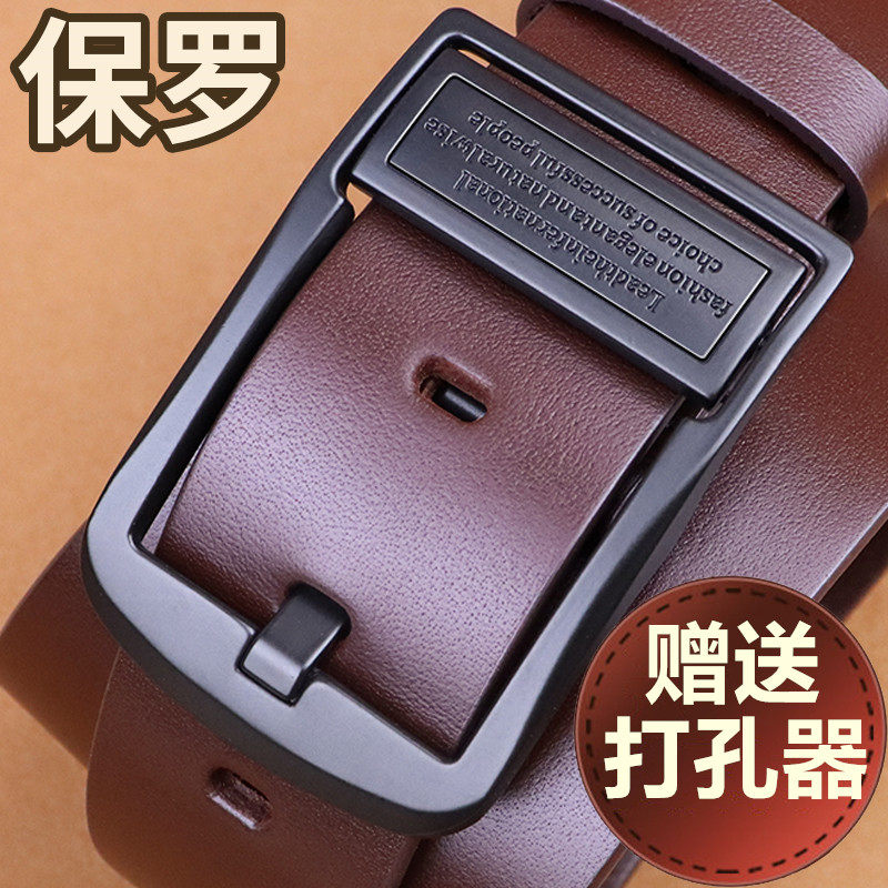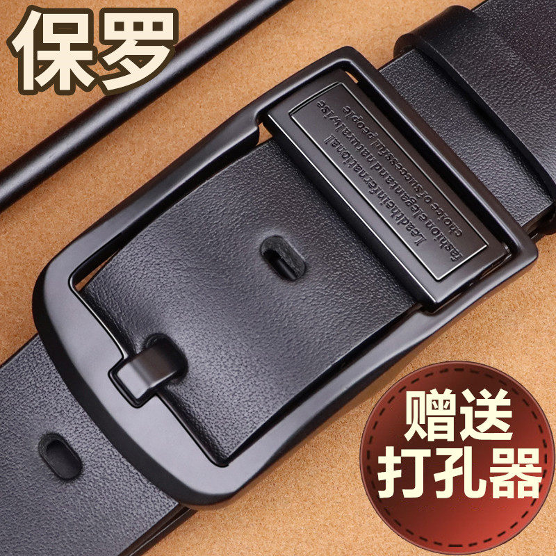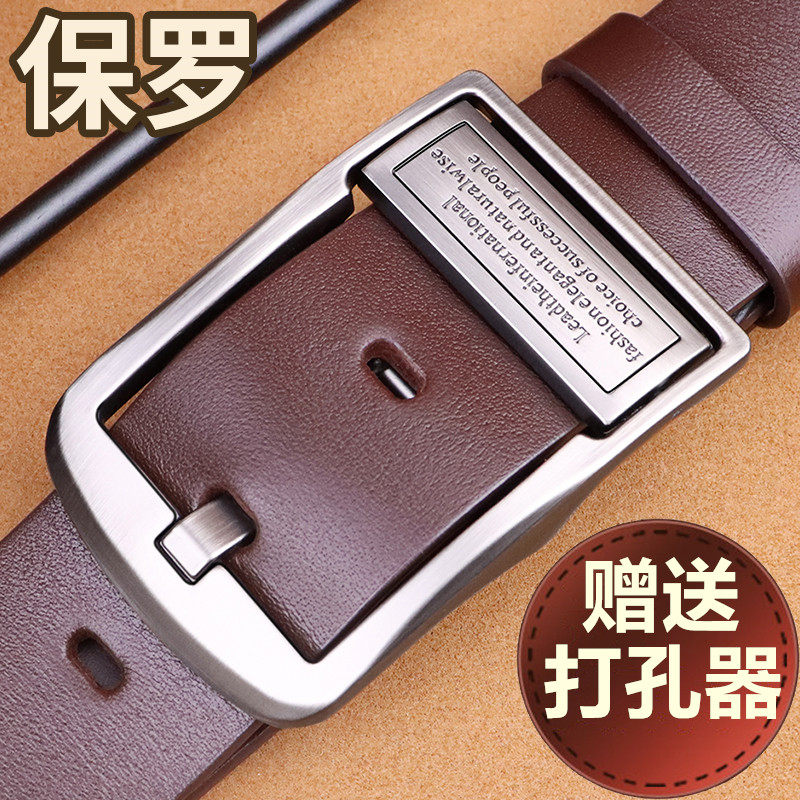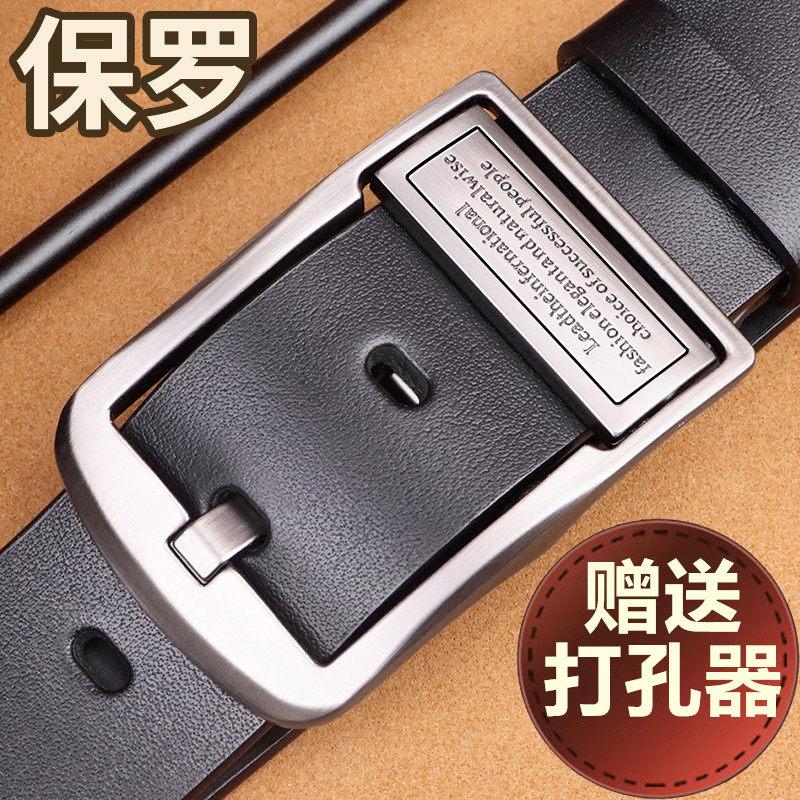 男士 带腰带 皮带双面扣头真皮针扣青年纯牛皮腰带牛皮针扣中年裤