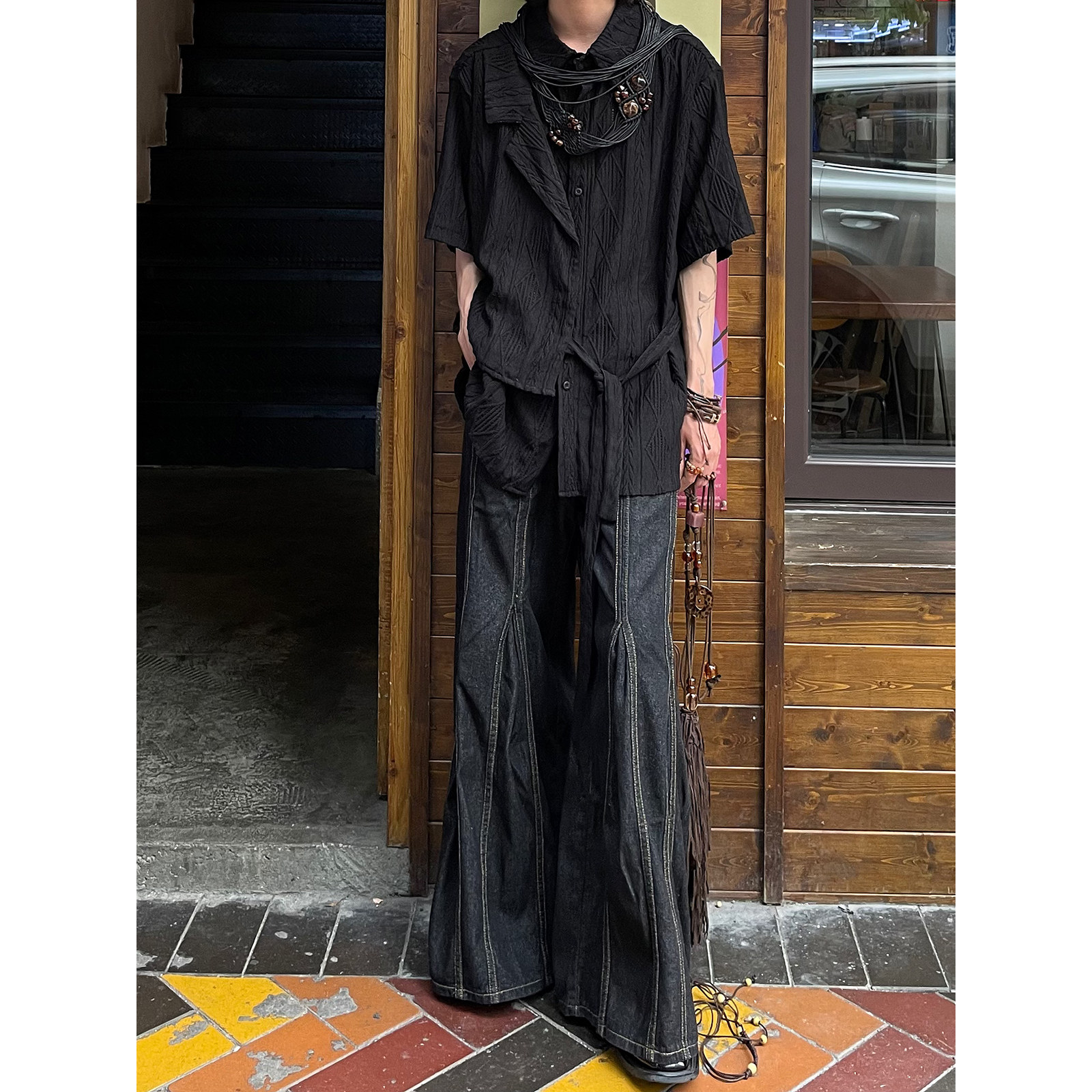 衬衫 以休眠 拼接绑带设计短袖 复古小众提花镂空肌理感新中式 夏季