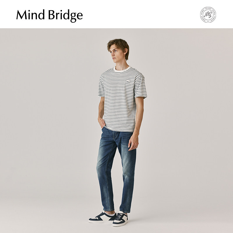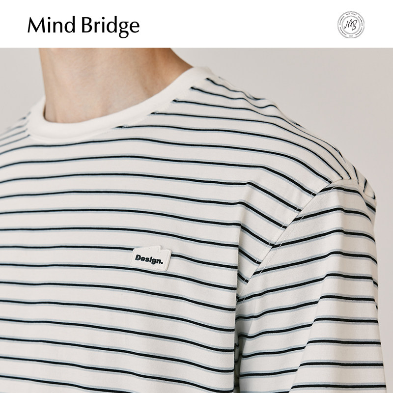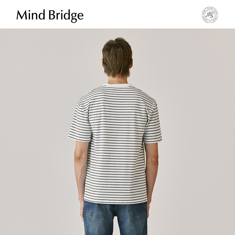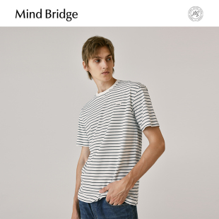 简约休闲T恤夏季 圆领潮短袖 百搭条纹上衣 MindBridge百家好男士