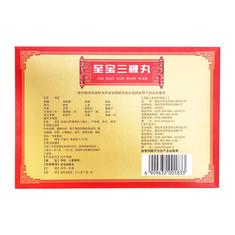 中亚至宝三鞭丸补血生精健脑补肾虚肾腰背酸痛头晕虚汗