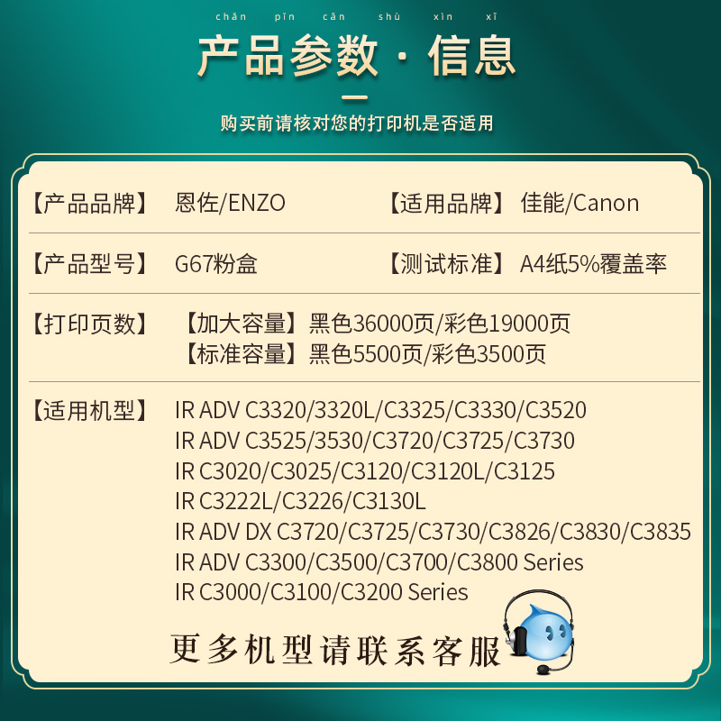 C3725 C3100 C3730复印机墨盒C3826 C3835墨粉C3000 C3200Series碳粉G67硒鼓 C3830 适用佳能NPG67粉盒C3720