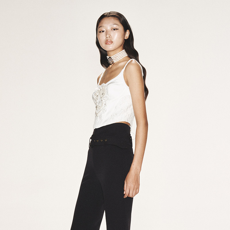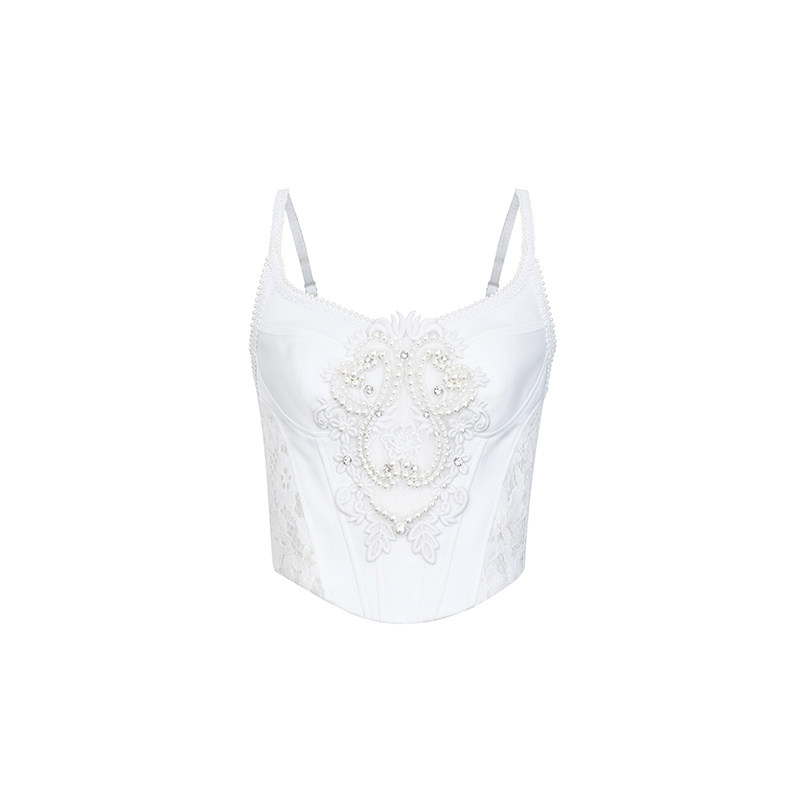 饰打揽刺绣时尚 lefame拉飞姆珍珠装 吊带衫 明星同款