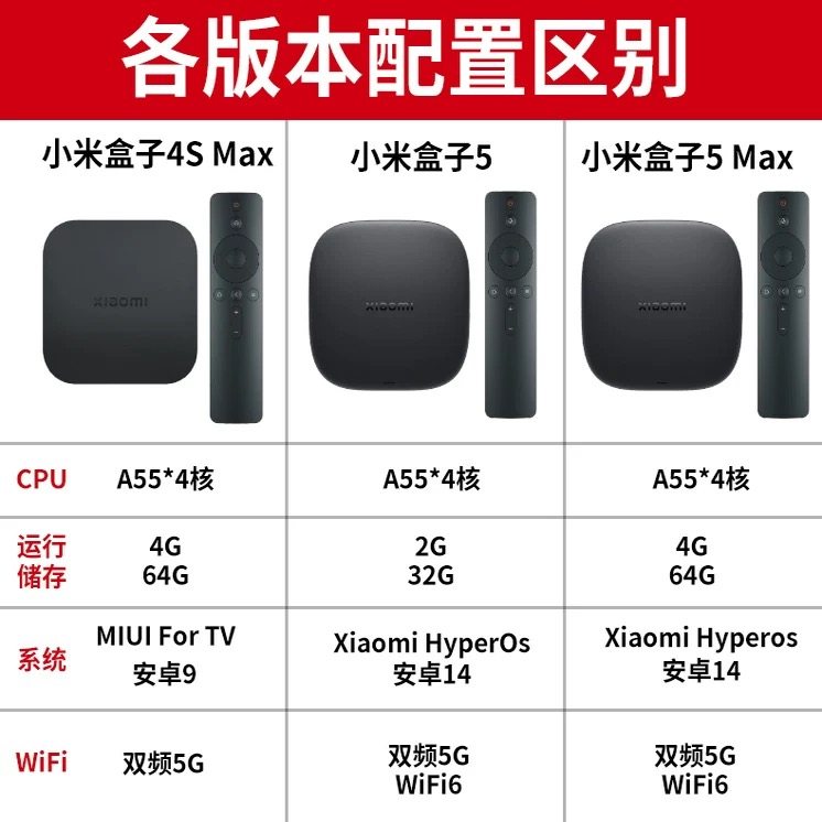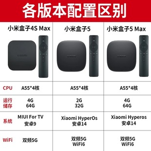 高清机顶电视盒子4K高清播放器4SMAX 增强版 小米盒子5 MAX优化版