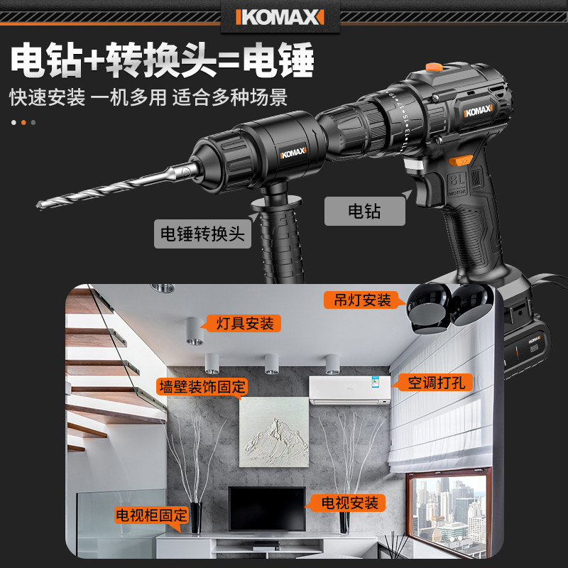 家用冲击手电钻工具小手枪钻电动螺丝刀充电式 多功能锂电手钻电转