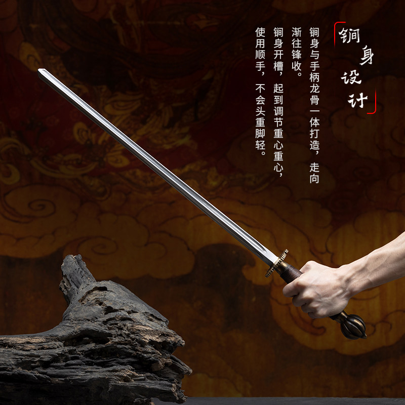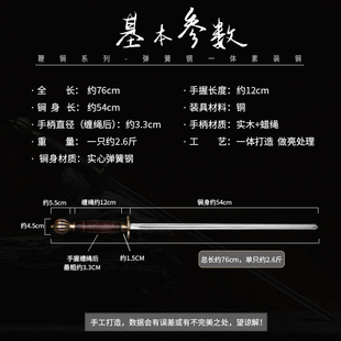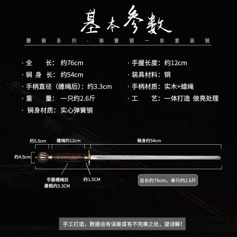 送架子皮套未开刃 实心钢制秦琼双锏鞭武术兵器 弹簧钢一体素装 锏