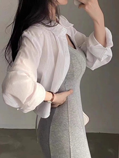 开衫 大码 薄款 女春夏后背绑带上衣长袖 防晒衬衣外套 胖妹妹雪纺衬衫