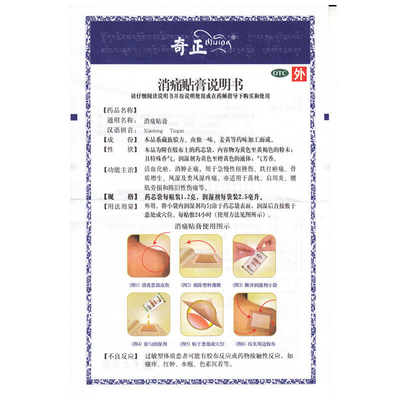 急慢性扭挫伤 6贴 跌打瘀痛 骨质增生 肩周炎 奇正 落枕 消痛贴膏