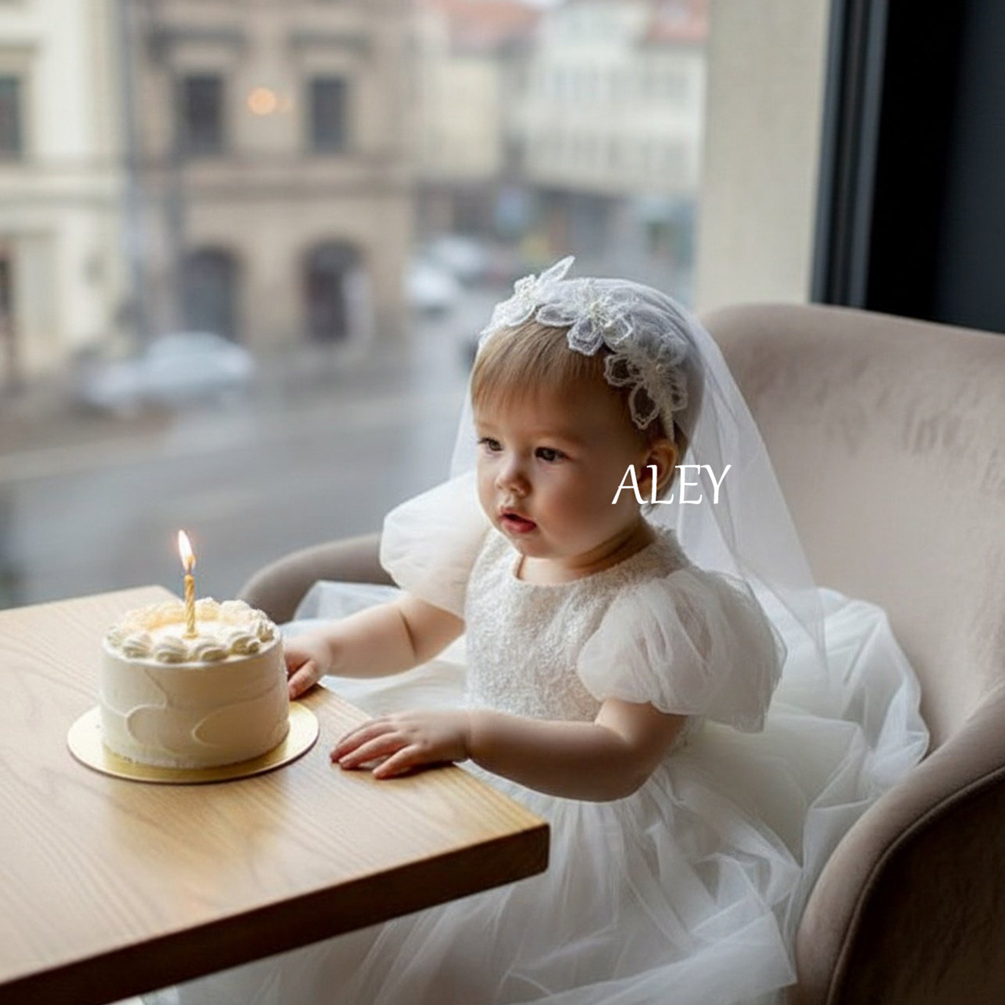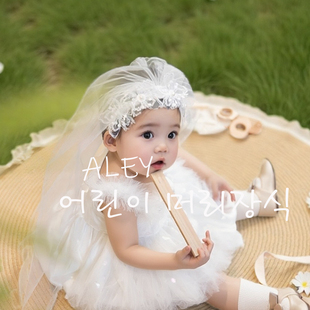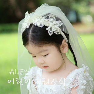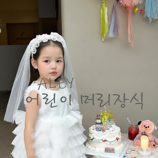欧美花童头纱蕾丝花瓣造型发箍宝宝周岁生日宴头饰女生中长款 披纱