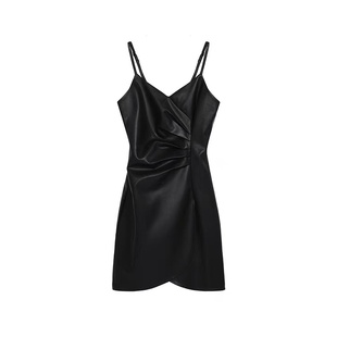 新款 纯色高级感荡领吊带连衣裙2024夏季 辣妹开叉长裙 时尚 欧美ins