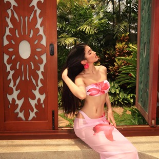 假面猫 泳衣女泡温泉连体性感露背网红度假风粉色比基尼 娜扎同款
