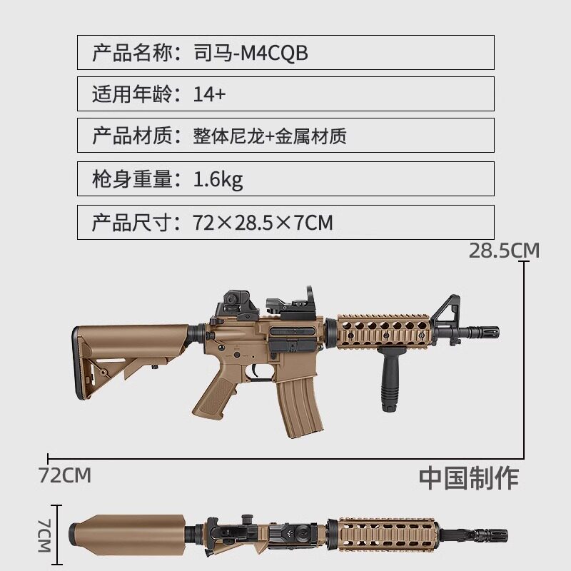 司马M4CQB军典M416金齿3代真人cs武器仿真冲锋吃鸡枪电动连发玩具