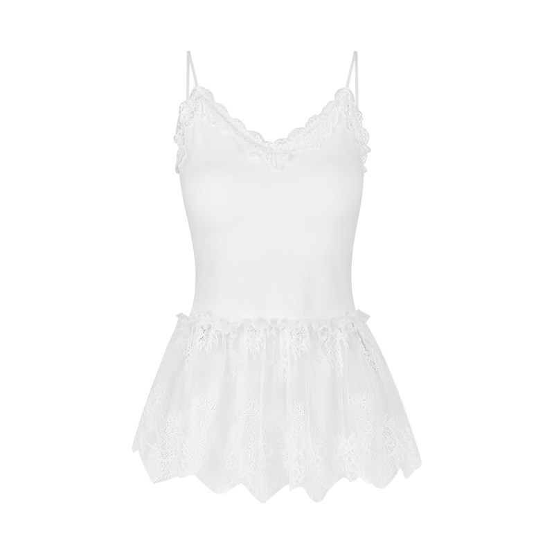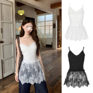 MosesQueen魔西女王白色蕾丝带胸垫吊带背心女内搭外穿打底上衣夏