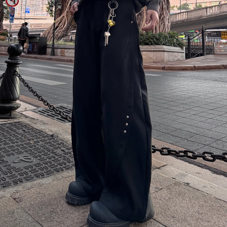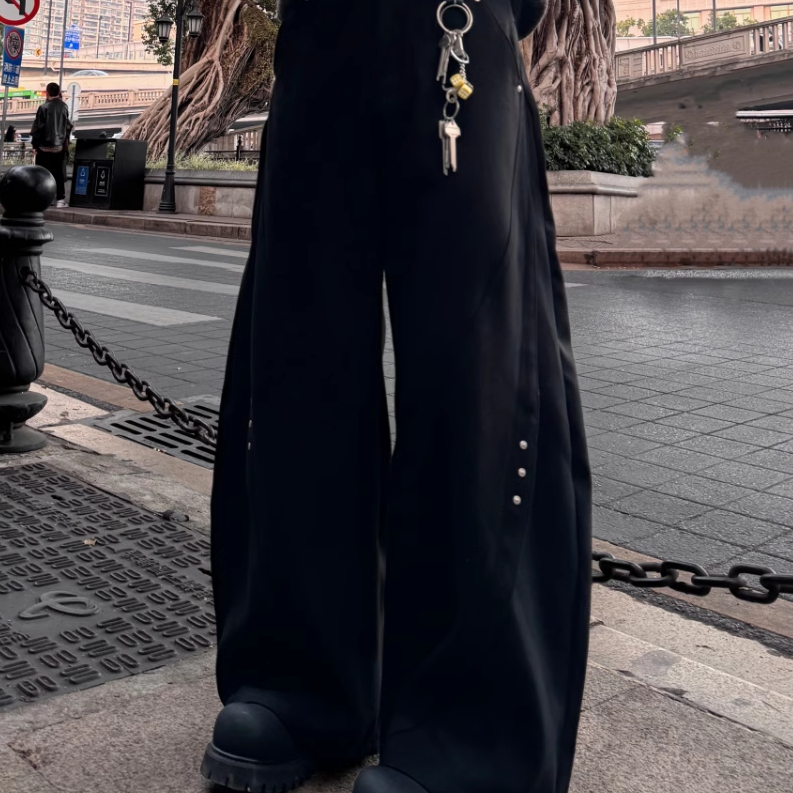 男女垂坠感拖地裤 拼接铆钉休闲裤 子 高级设计感弯刀西裤 行星世界