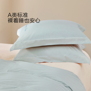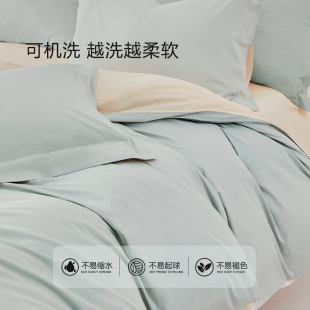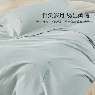 水星家纺A类全棉水洗棉四件套纯棉素色简约套件家用被套床单床品