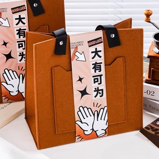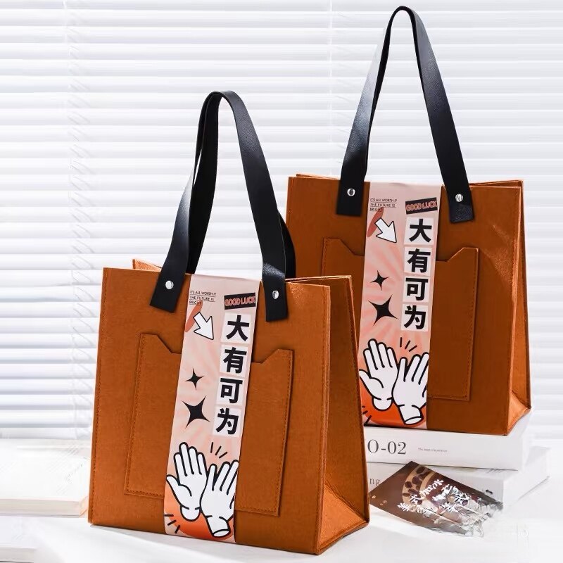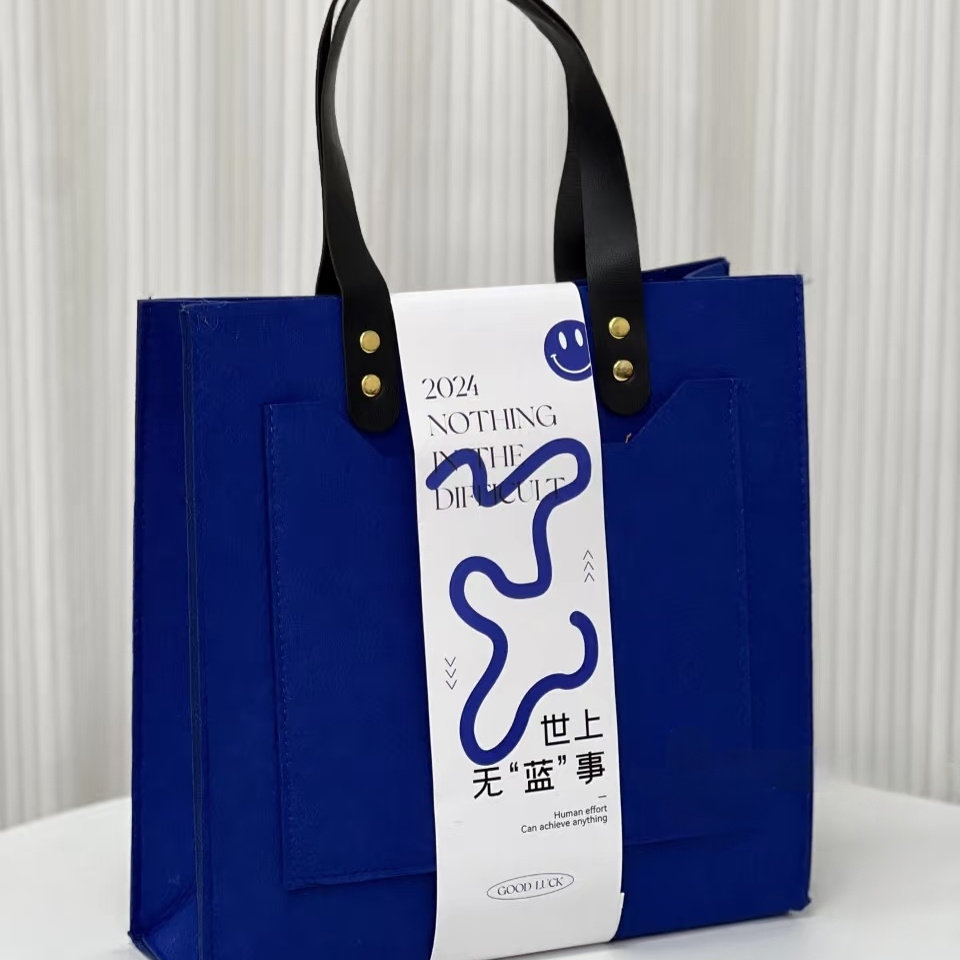 新款 礼品定制logo大容量通勤手提包年会活动礼品袋 毛毡包皮带款