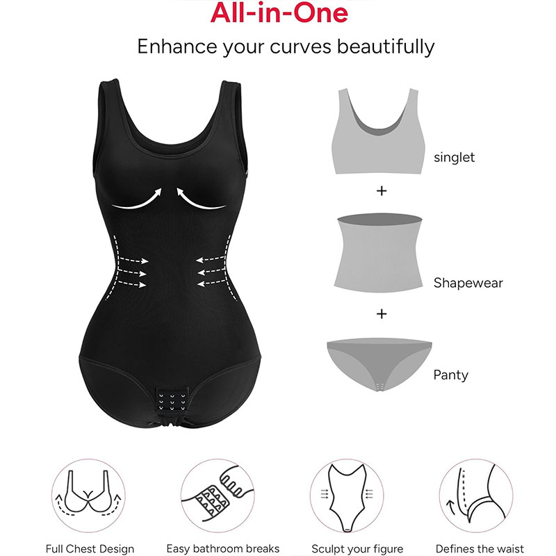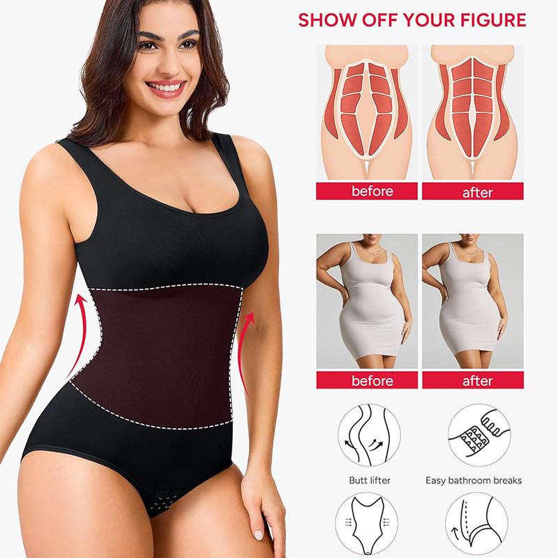 Neck Round Tummy Control Bodysuit Womens Shapewear Seamless