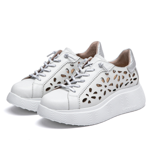 WONDERS西班牙原产进口雕花镂空超轻舒适厚底松紧带女单鞋
