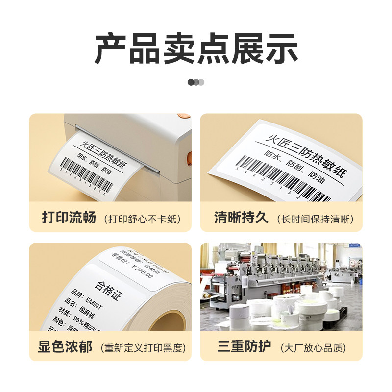 火匠三防热敏标签打印纸60 100不干胶打印纸食品吊牌贴纸标价贴快递防水奶茶贴纸