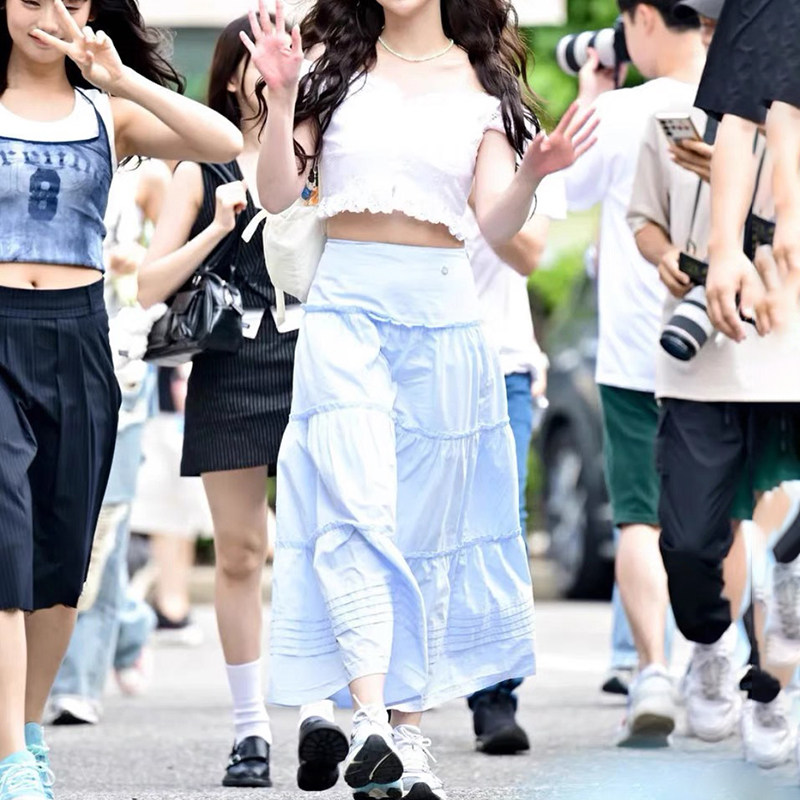 胖mm重工网纱刺绣拼接蕾丝不规则蛋糕裙 大码 白色半身裙长款 女秋季