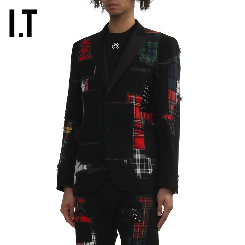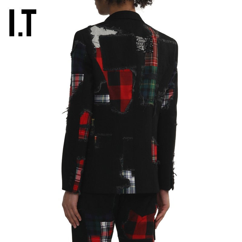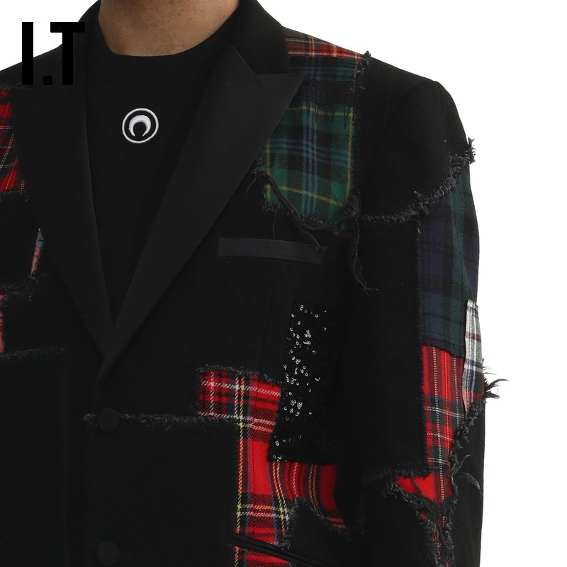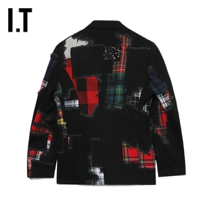 夹克新款 西装 WATANABE男装 日潮复古破坏感格纹裁布拼接 JUNYA