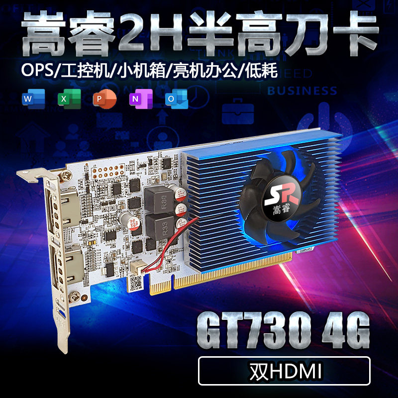嵩睿低功耗亮机显卡GT7304G R5230半高刀卡GT1030单层办公服务器