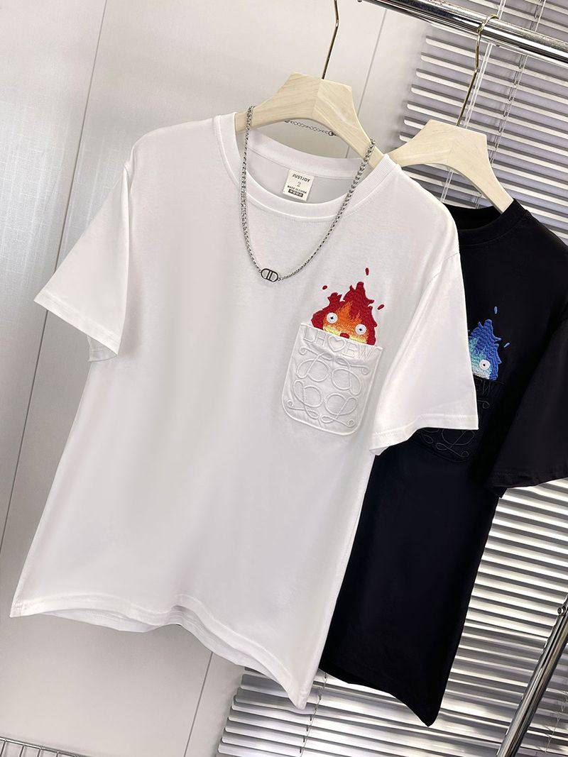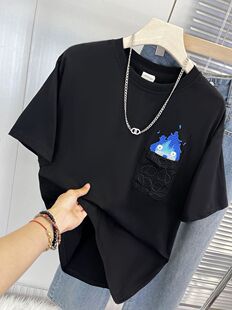 特大码 T恤男女通勤情侣上衣 300斤日系复古潮牌小火苗刺绣短袖