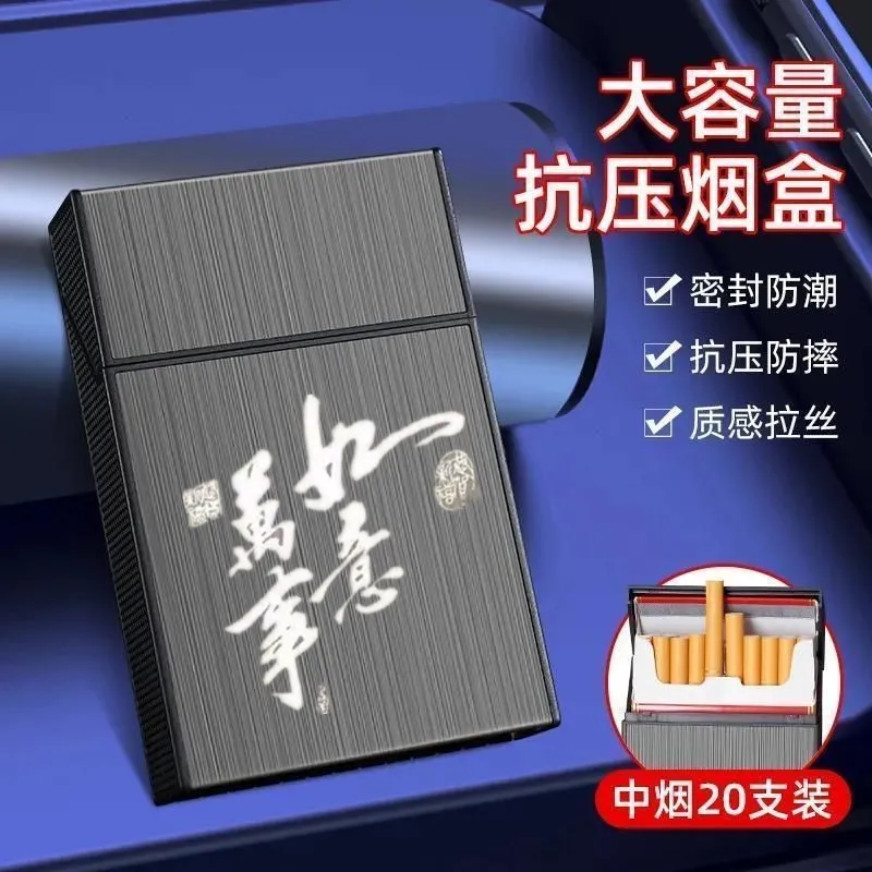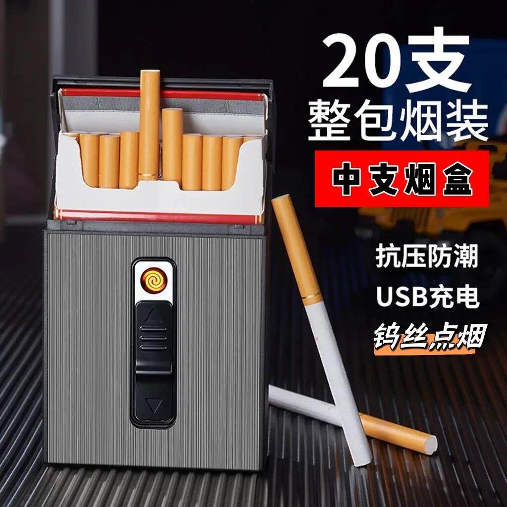 新款 大容量抗压防潮轻薄空盒 中支6.5烟盒充电打火机一体盒20支装