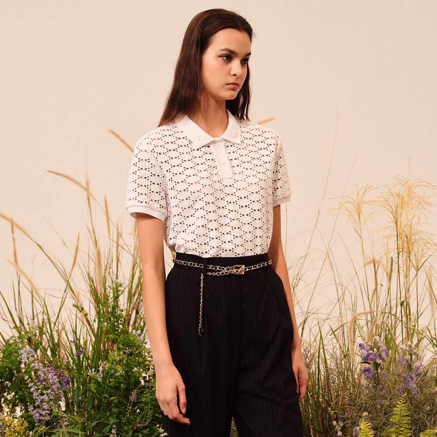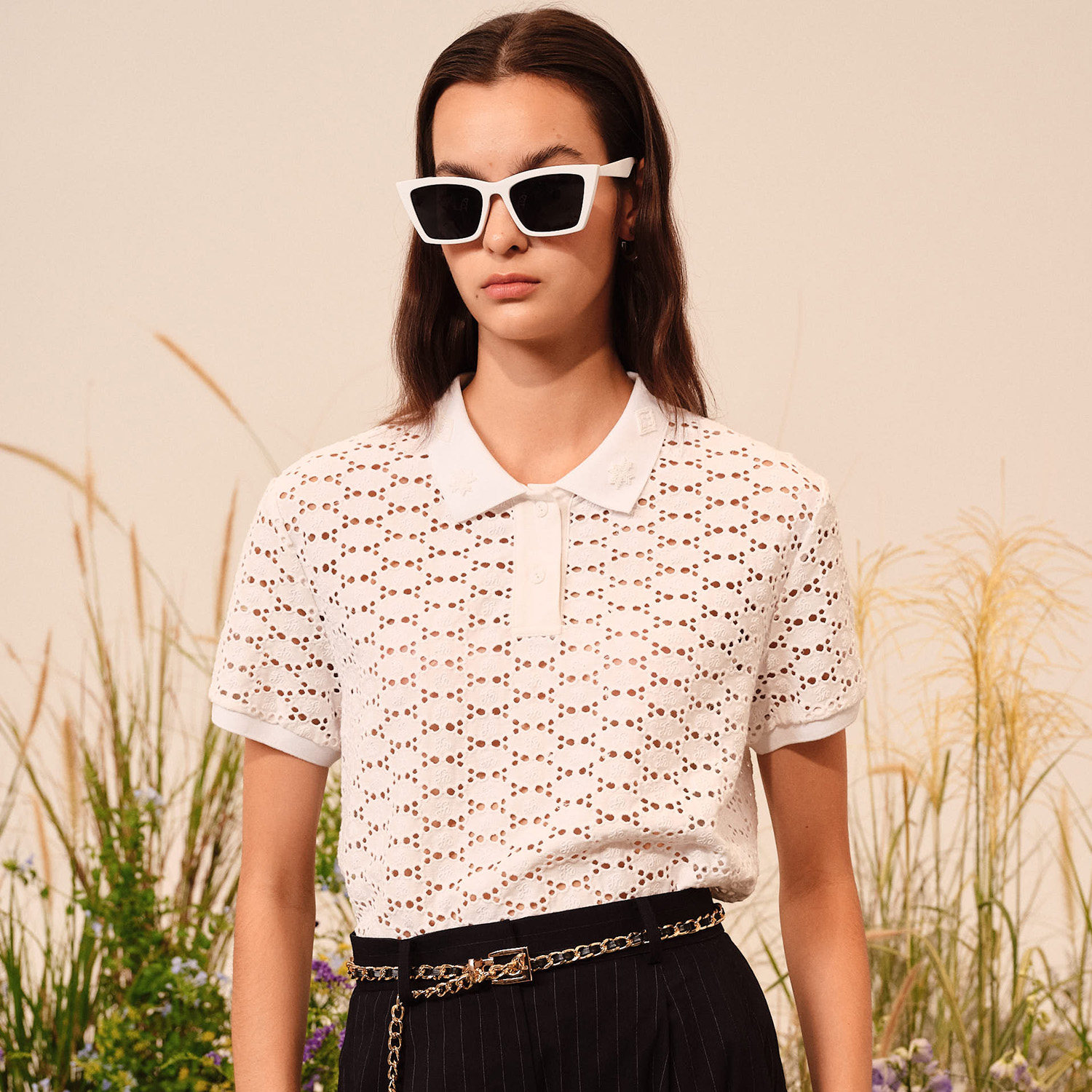 罩衫 J&NINA法式 爆款 t恤女新款 清爽透气上衣 镂空短袖