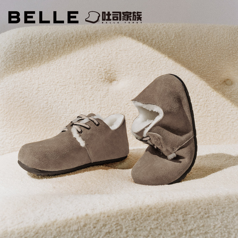 女雪地靴牛津单鞋 周雨彤同款 百丽枕头吐司毛毛加绒冬全包勃肯棉鞋