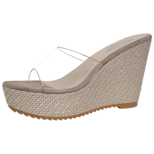 小个子厚底坡跟编织罗马拖鞋 百搭高跟透明一字凉拖 女外穿2026夏季