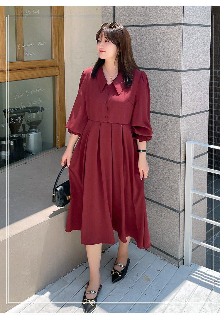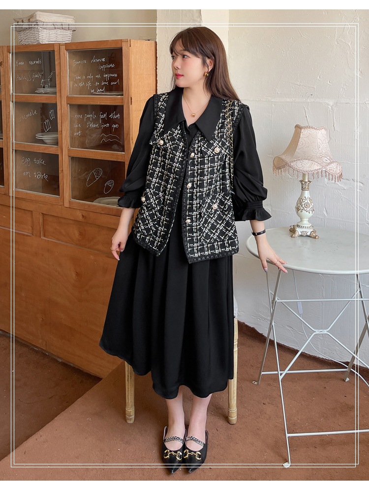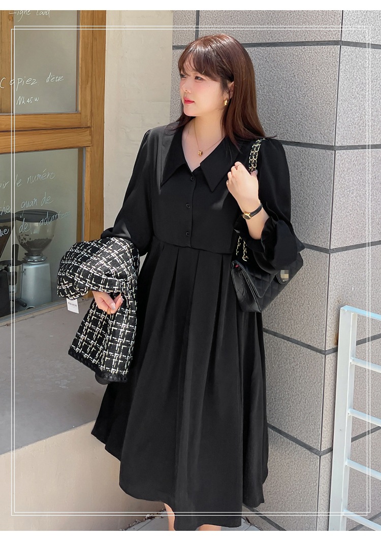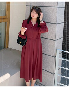 气质遮肚子显瘦裙子 翻领连衣裙女300斤200胖mm秋冬法式 特大码 长袖