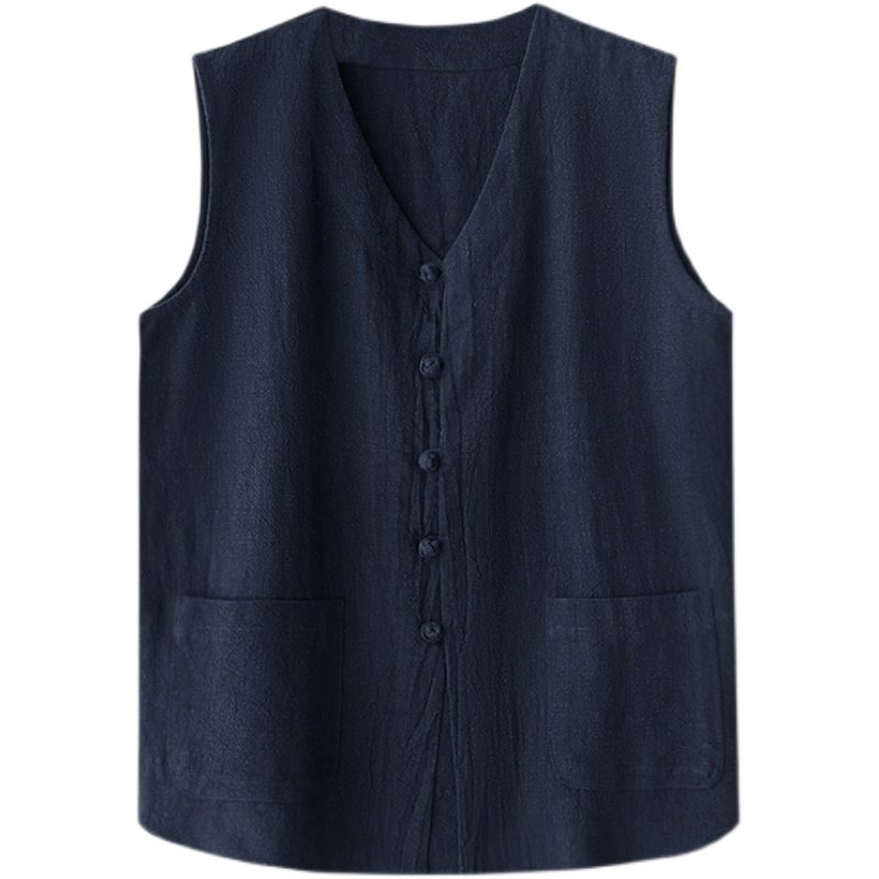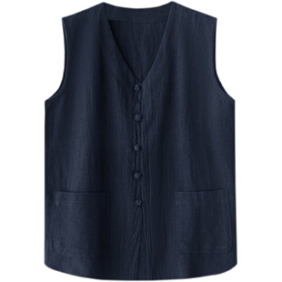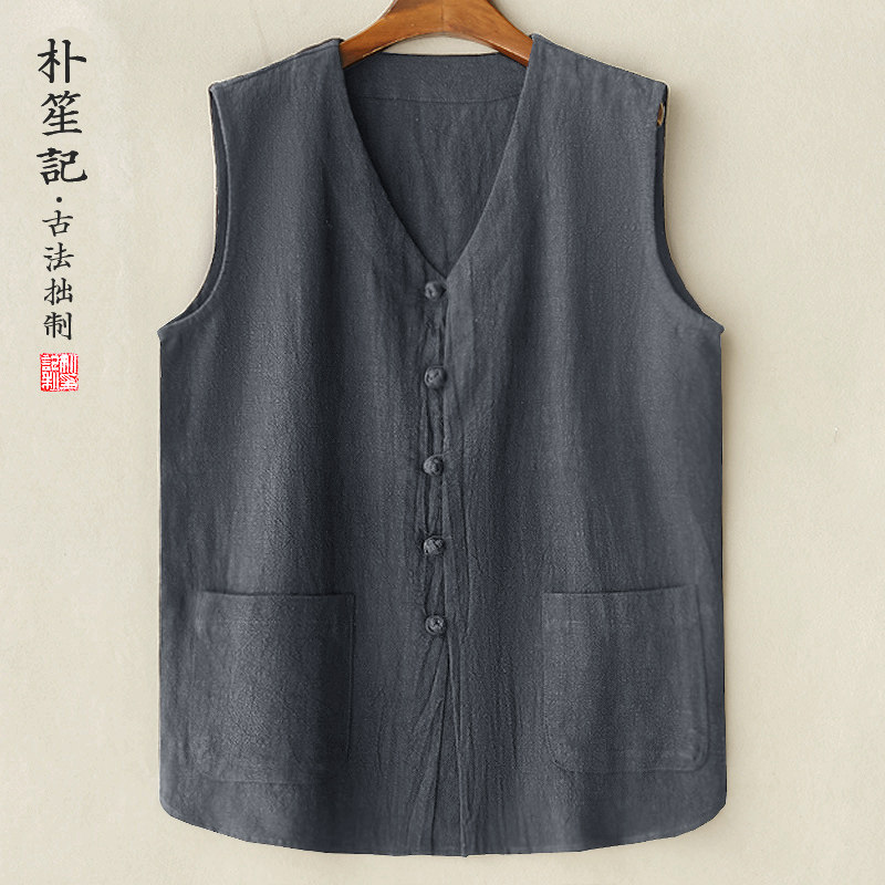 朴笙记原创男士 坎肩简洁马甲 宽松单层棉麻背心复古中国风盘扣大码
