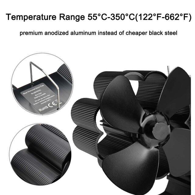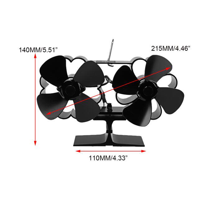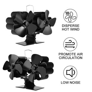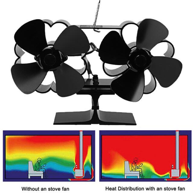 Heat Black Fan Stove Powered Blades Fireplace Heads Dual