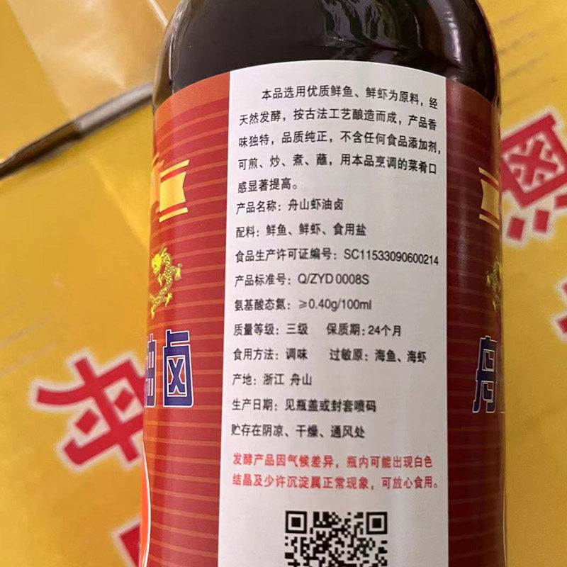 舟山虾油卤500mlX2瓶提鲜增香虾油鱼露海鲜调味料烹饪海味 包邮