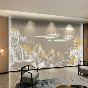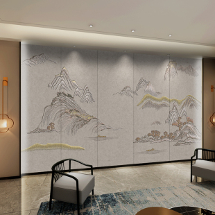 刺绣硬包背景墙新中式 打印3d画 山水独绣客厅沙发酒店卧室床头宋式