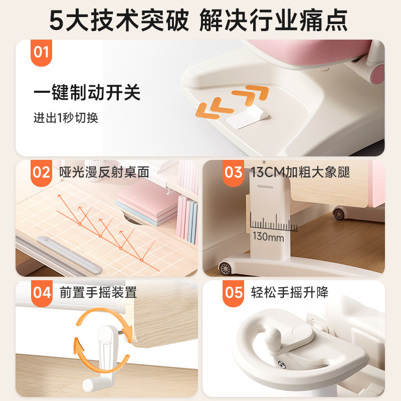 名汉玛儿童学习桌小学生书桌可升降桌子实木写字桌家用课桌椅套装