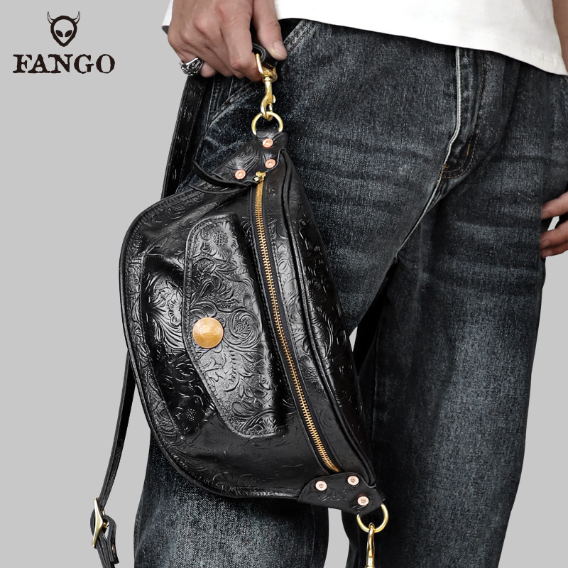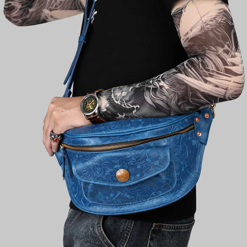 手工牛皮男士 胸包头层牛皮单肩斜挎包高档小背包国风潮牌复古腰包