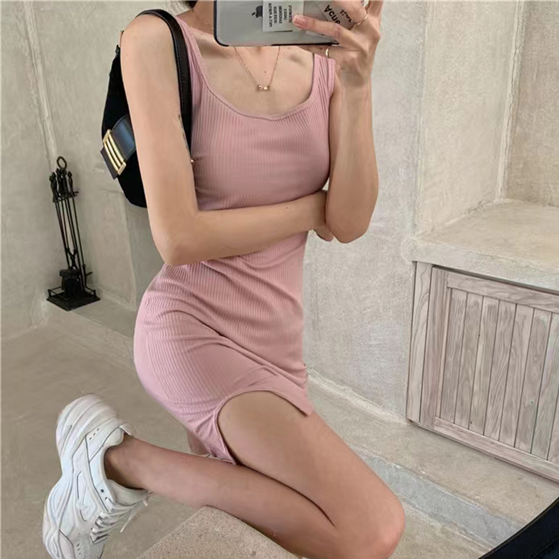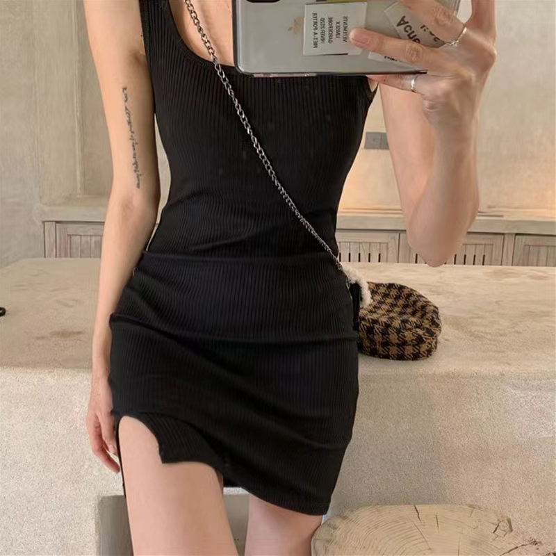 性感修身 大码 轻熟风无袖 新款 开叉小黑裙 黑色吊带连衣裙女2022夏季