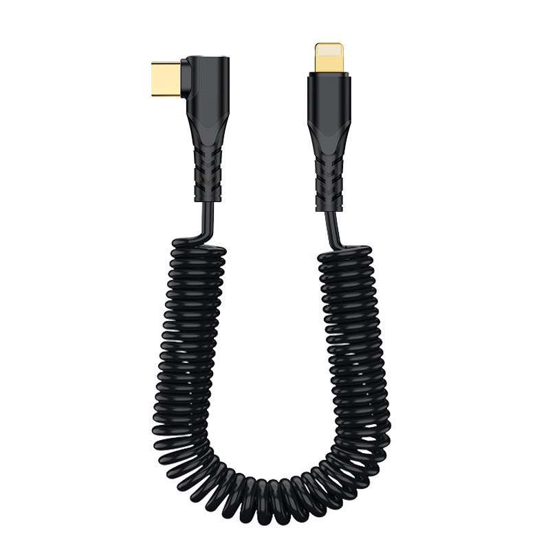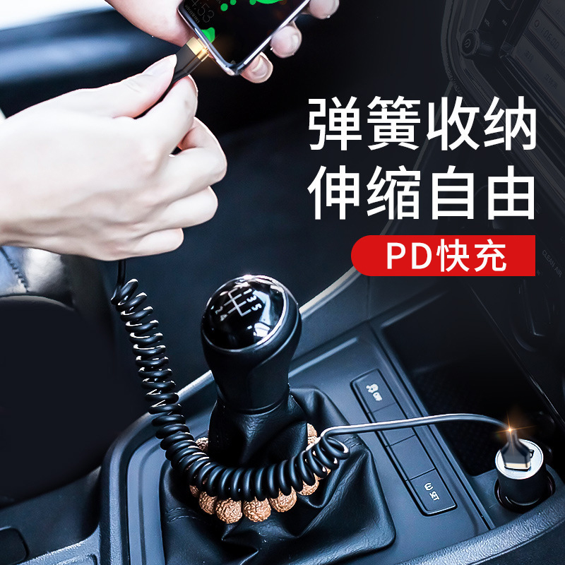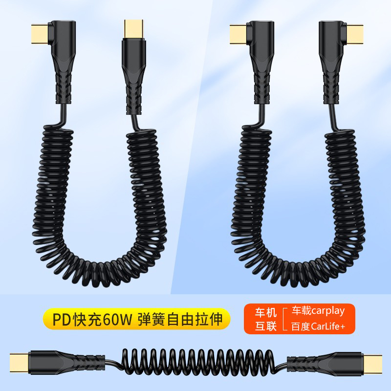 C60W车用USB C转双type C伸缩线carplay 15车载充电线type PD20W快充弹簧数据线弯头适用华为苹果16iPhone14